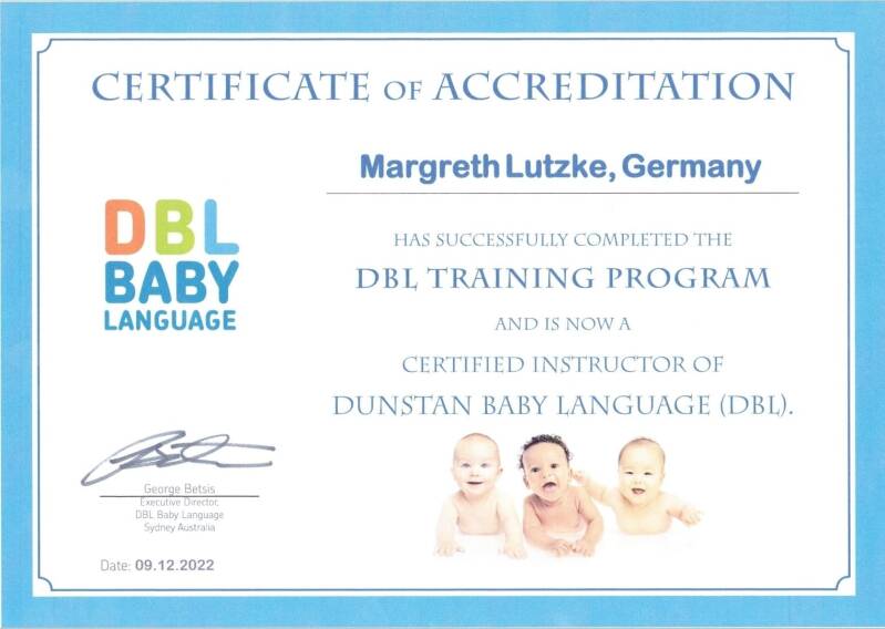 Mein Zertifikat zur Ausübung als Kursleiterin der Dunstan Babysprache